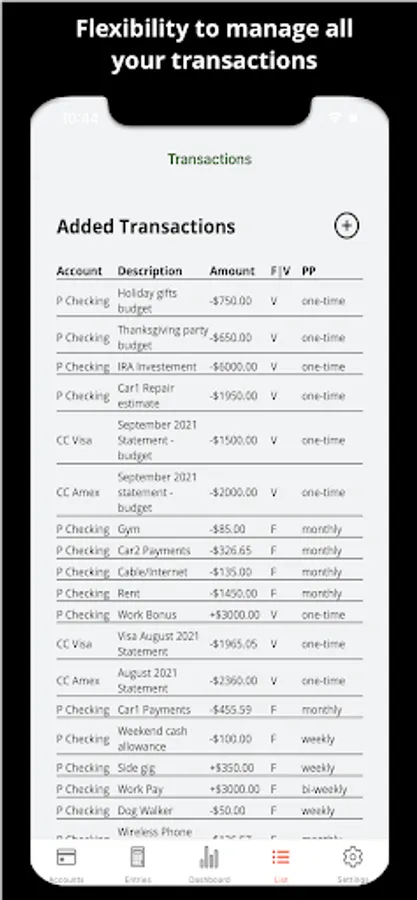 -Flexible entries allow you to add accounts and categories to group your income and expenses