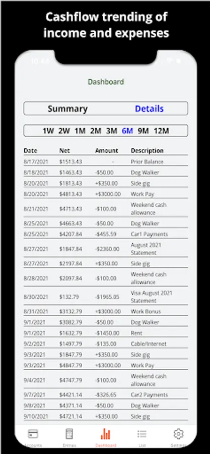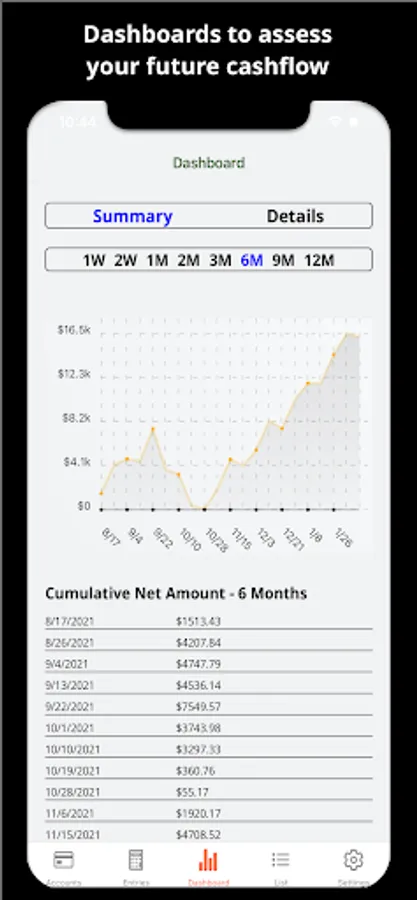 -Use the dashboard summary or detailed view to see where your cash is going up to one year into the future so you can make better financial decisions today