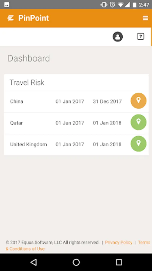 Equus Software’s PinPoint Travel Calendar simplifies business travel compliance for mobile employees. Real-time check-ins through GPS or manual entry allow users to confirm travel and provide HR teams with important information in case of an emergency.