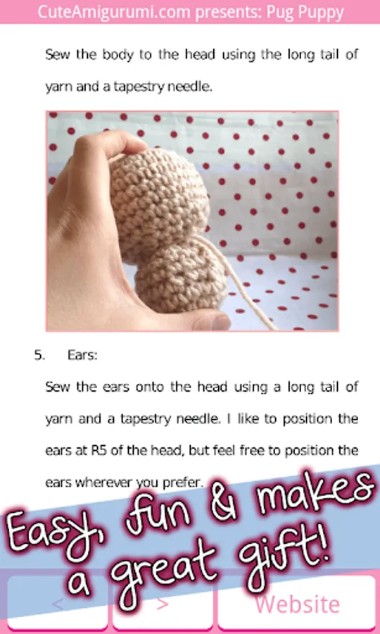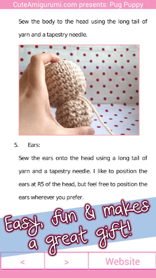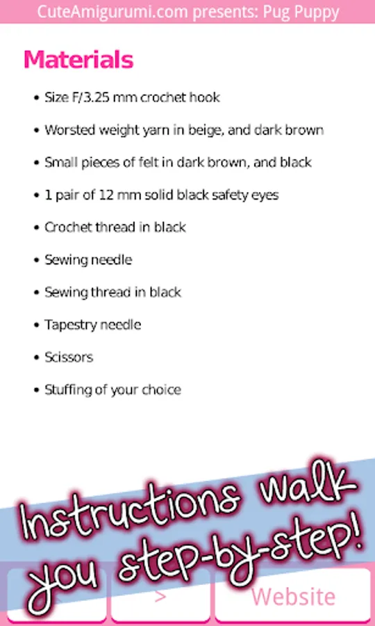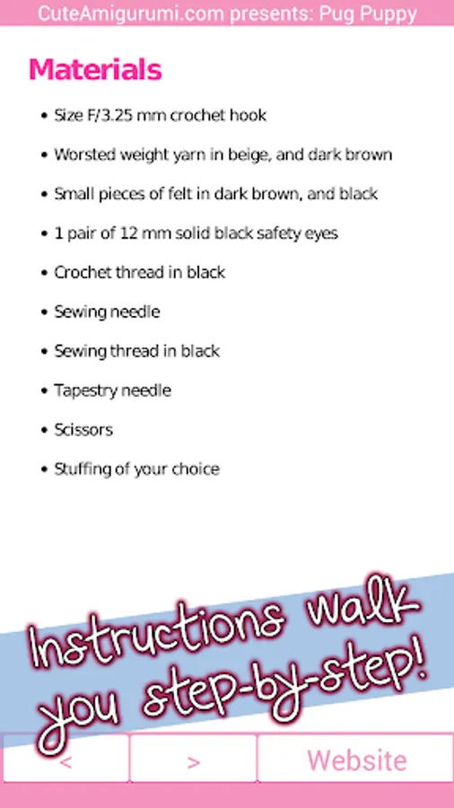 This crochet pattern walks you through each step using standard US crochet notation. The amigurumi pattern here is very detailed and contains 50 pictures so you can make sure you are on track every step of the way as you are crocheting the pug puppy.