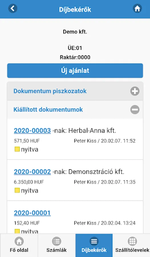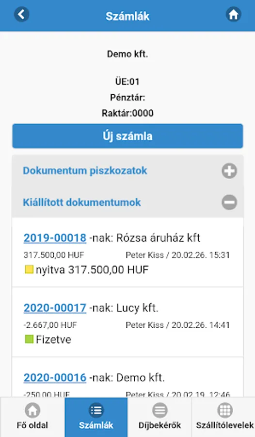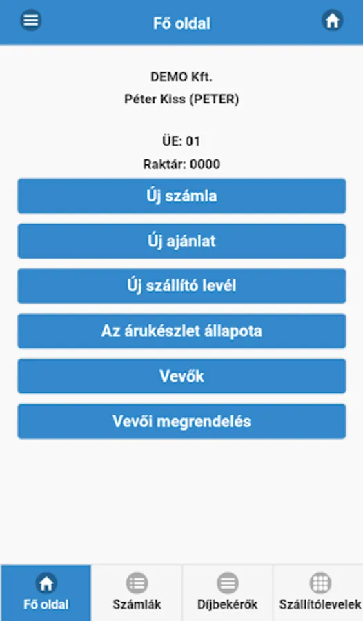 A mobile application for users of the e-szamla.com program to issue invoices, receipts and delivery notes and manage inventory status.