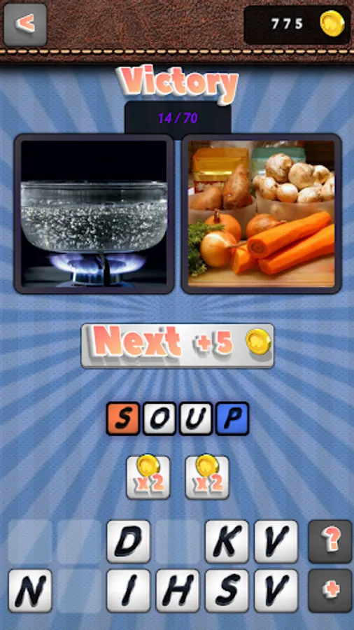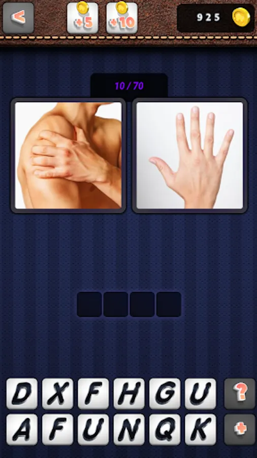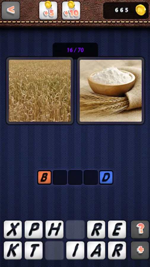 If you don’t know what kind of word is hidden behind the pictures, then there are 3 types of hints in the game: opening the last letter, first letter, and all letters without deleting them; using hints you can quickly guess or understand what kind of word is hidden behind this riddle.