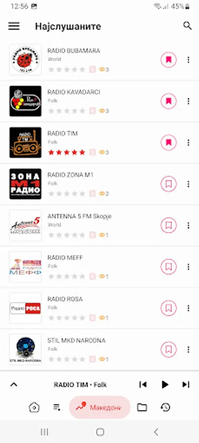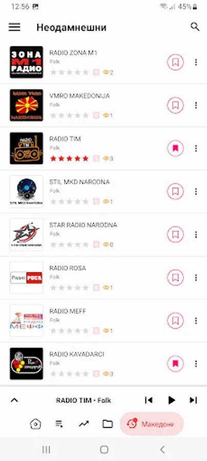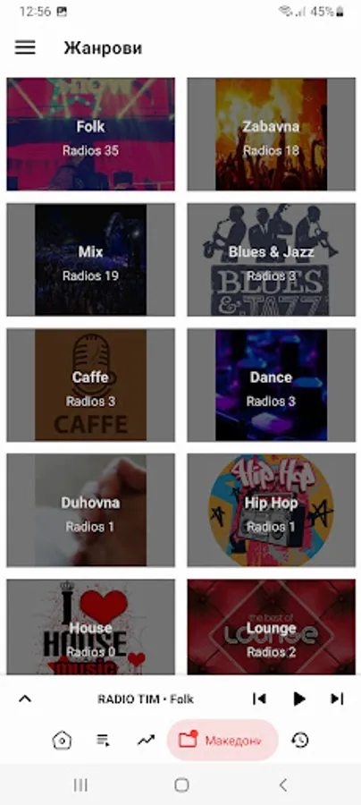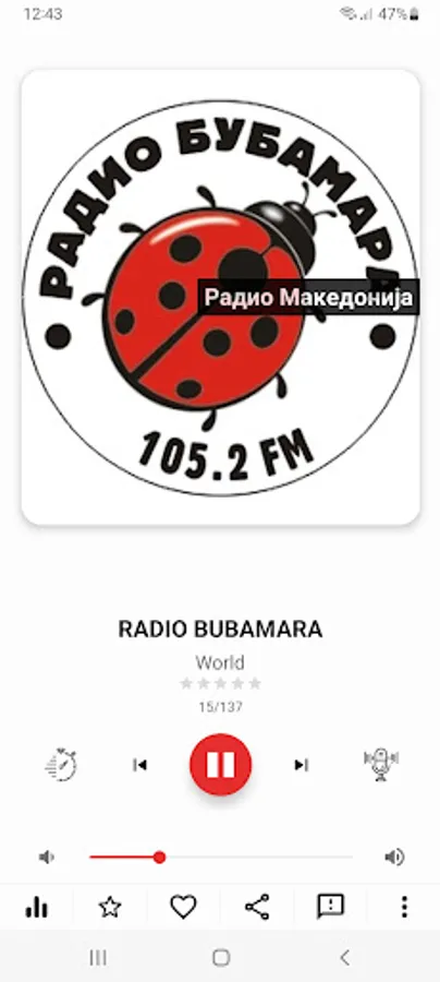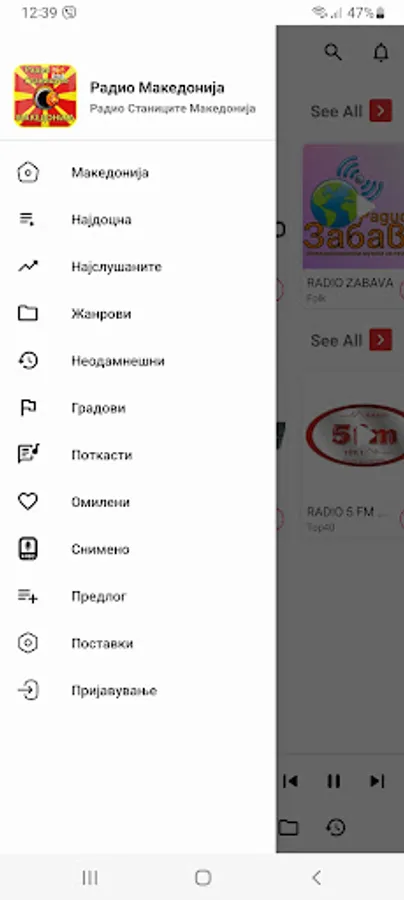 Listen to radio stations from Macedonia on your Android phone anytime and anywhere. The application has about 140 radio stations. You can register and login or simply click skip and continue using the app. When you install the application, find your favorite radio stations by search or by city list. When you select favorites and start listening, the home screen and other features will automatically start to appear. You can record songs, change theme colors, titles and more. Be sure to clear the cache, the clear option is in the settings. The app contains a sleep timer. If a station is down, send a notification by clicking the icon in the lower right corner.