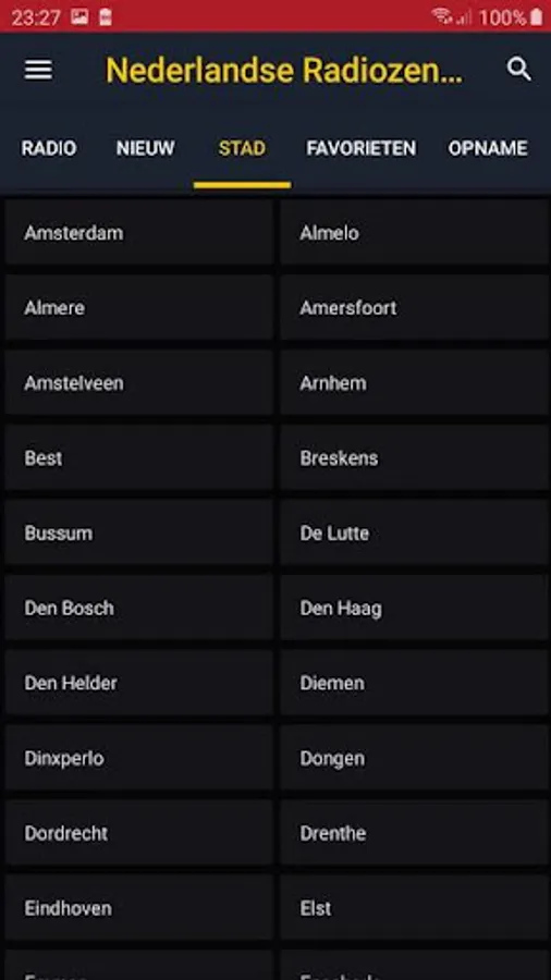 Listen to radio stations from the Netherlands on your phone anytime, anywhere. The internet is necessary. The app contains 250 radio stations. The application has the following features: search, you can see when a new station has been added to the list, search by place name, favorite radio stations, you can record your favorite songs, sleep timer, equalizer. The list shows the 100 most listened to radio stations first, followed by 150 radio stations in alphabetical order.