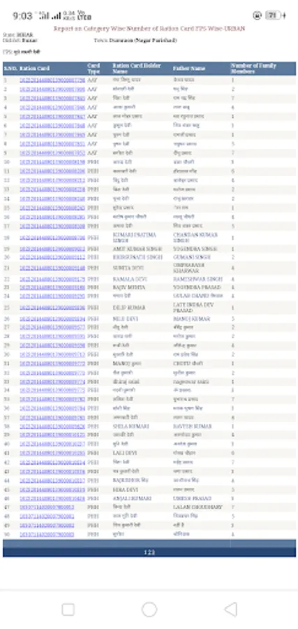 *Complete list with names of Ration Card Holders in Bihar