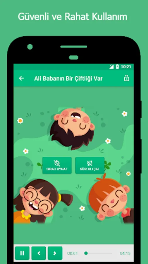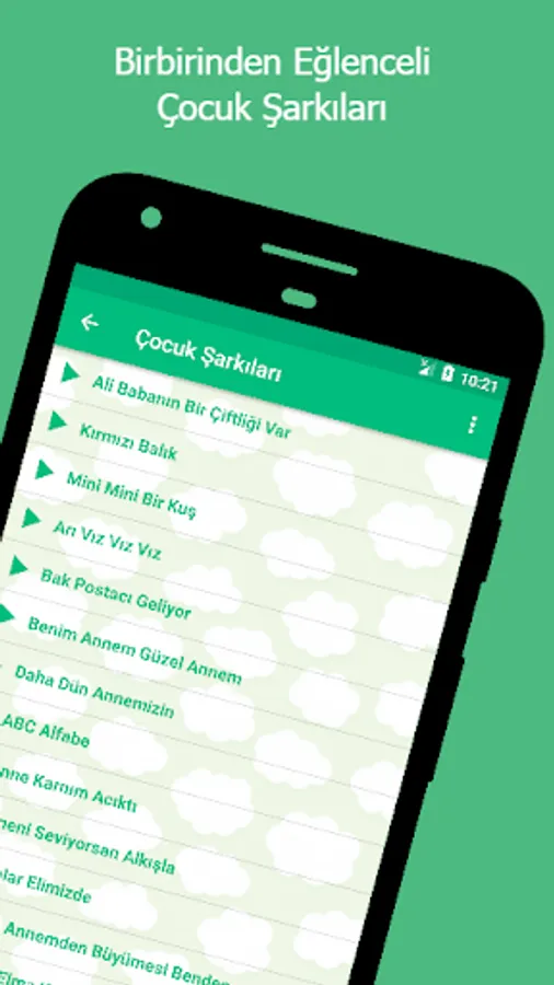 We have collected the most beautiful children's songs for you. You can easily access children's songs without internet from our application. We support the development of your children with our educational children's songs content. We have reserved a place in our application for the most listened children's songs. Video children's songs will also be included in our application soon. Children's songs work without internet and you values have been developed to prevent the decrease of the internet quota of our visitors.