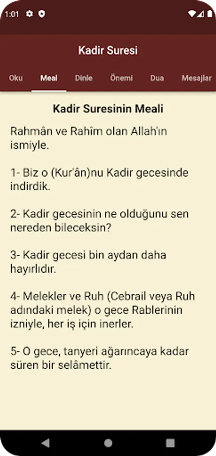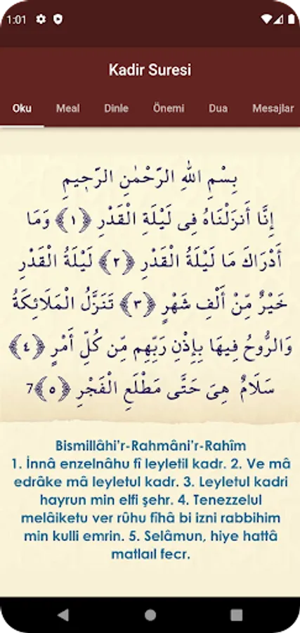 You can download and listen to Surah Al-Qadr and get detailed information. You can listen to Surah al-Qadr and memorize Surah al-Qadr at the same time. Download Surah al-Qadr works without internet. You should try our application to download Surah Al-Qadr with audio. You can also pray with Surah Al-Qadr prayers.