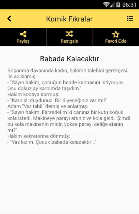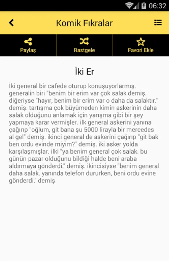 You can find more than 2,500 funny jokes in 14 categories from our application. It is an application that users who want to read jokes without internet can not give up. You can search for the joke you want and share the joke you like with your friends via accounts such as Facebook, Twitter, Whatsapp. Users who want to read free jokes can read free jokes by choosing the category they want in our application. You can add the joke you want to your favorites and view it again here whenever you want. With the random joke reading feature, you can read jokes in a pleasant way. All you have to do is download funny jokes and enter the joke world. Have fun with 2022 Anecdotes.