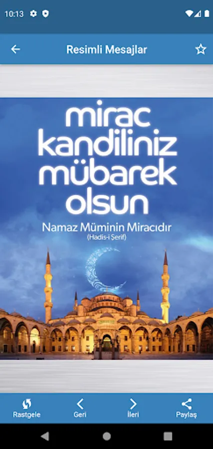 Picture Miraç Kandili You can view messages with pictures and share a congratulatory message with your loved ones. Miraç Kandili Messages also allow sharing in written form.
