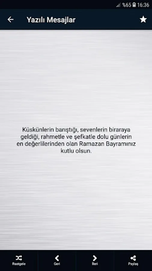 You can congratulate your loved ones with Eid al-Fitr messages without internet. You can send the most sincere and beautiful messages to your loved ones. You can send visual congratulations with picture Eid al-Fitr messages, or send sms with ready Eid messages. By adding the message you want to your favorites, you can make it easier for you to access it in the future, you can share the message you want with your loved ones with the share feature. Our application works completely without internet. You can use our holiday messages picture application for free. We have compiled the 2021 holiday messages for you. Celebrate the feast of your loved ones with Eid al-Fitr, picture and text messages immediately.