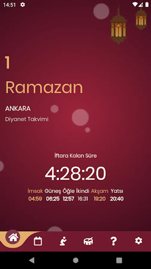 Follow iftar and sahur with Diyanet and Turkey Calendar Ramadan Imsakiye 2023. Both Diyanet prayer times and Turkey Calendar (cautious calendar, virtue calendar) are at your service with prayer times. Adhan times are automatically taken from the internet and are constantly updated. With the monthly imsakiye feature, you can take a look at the 1 month Ramadan imsakiye. You can listen to the Ramadan drums with the Ramadan drummer. You can reach the iftar prayer and get information about the month of Ramadan. Start 2023 one step ahead with the Ramadan guide application. You can follow the iftar time and sahur time on your home screen with the widget. Our application is the Ramadan imsakiye without internet and it works without the need for internet. Download 2023 imsakiye without internet for all provinces and follow iftar and sahur. You don't need to think about how much time is left for iftar and how much time is left for sahur.