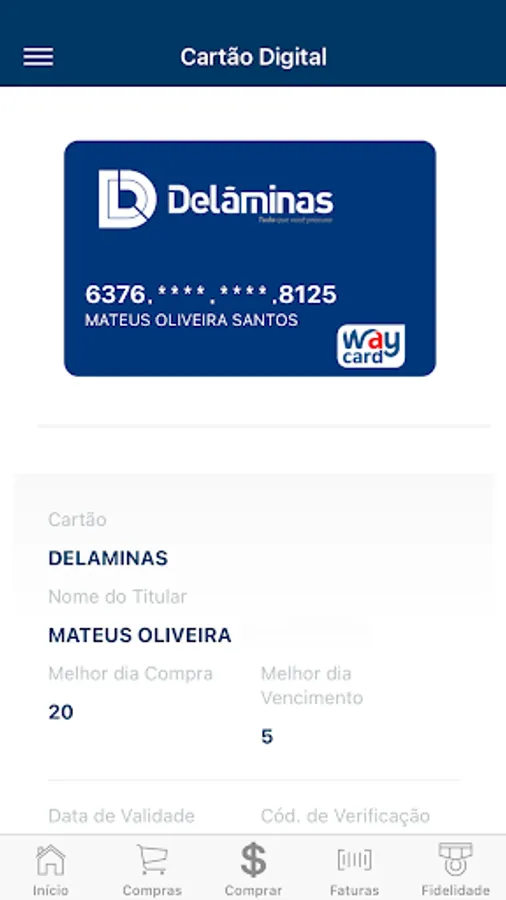 With the DELÂMINAS WayCard App Card, you can check your credit limit, your loyalty points, your purchases and invoices, among other features. With the app you will also be able to pay for your purchases safely and conveniently.