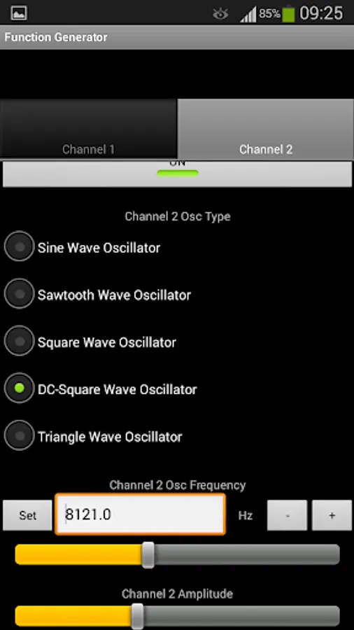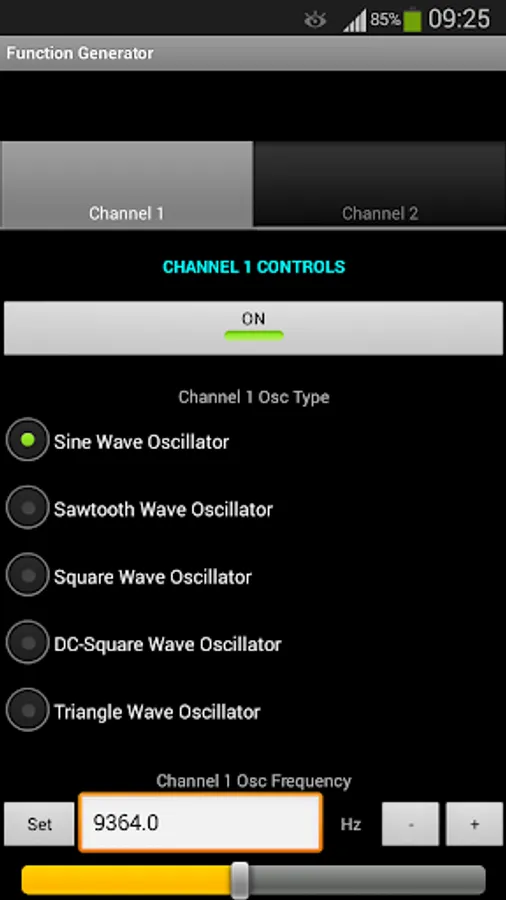 - Oscillator frequency can be adjusted by seek bars or direct keypad typing.
