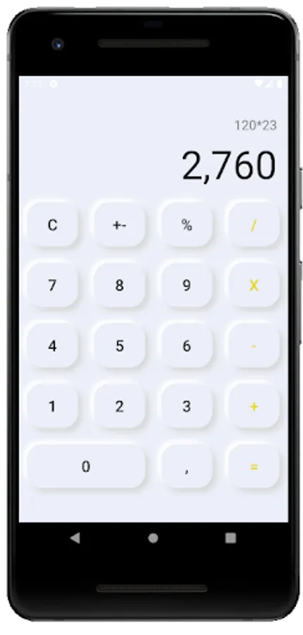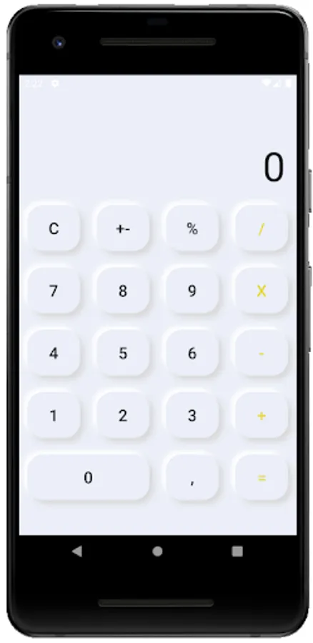 Calculator app allows you to perform basic operations: addition, subtraction, multiplication and division