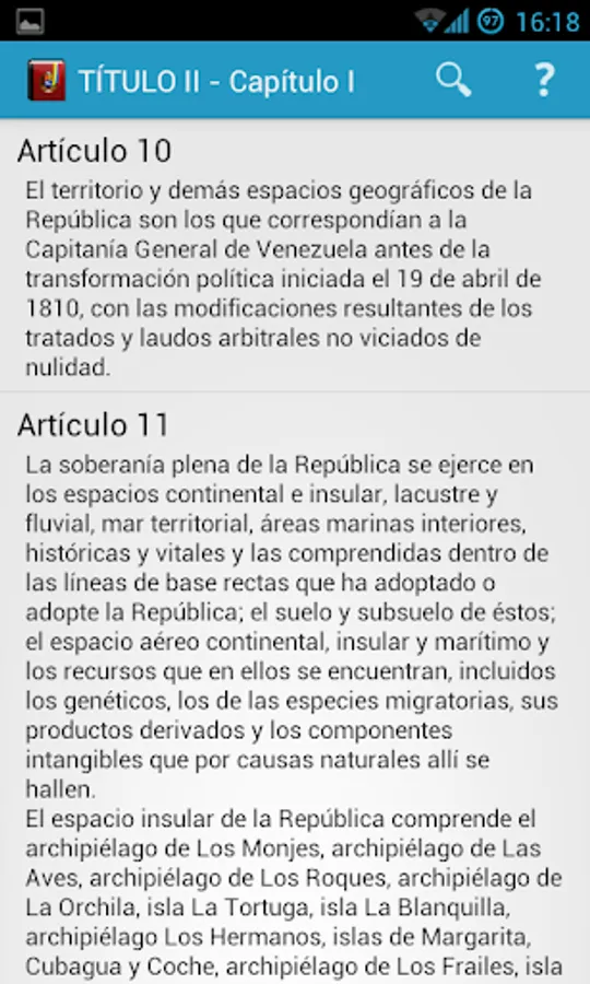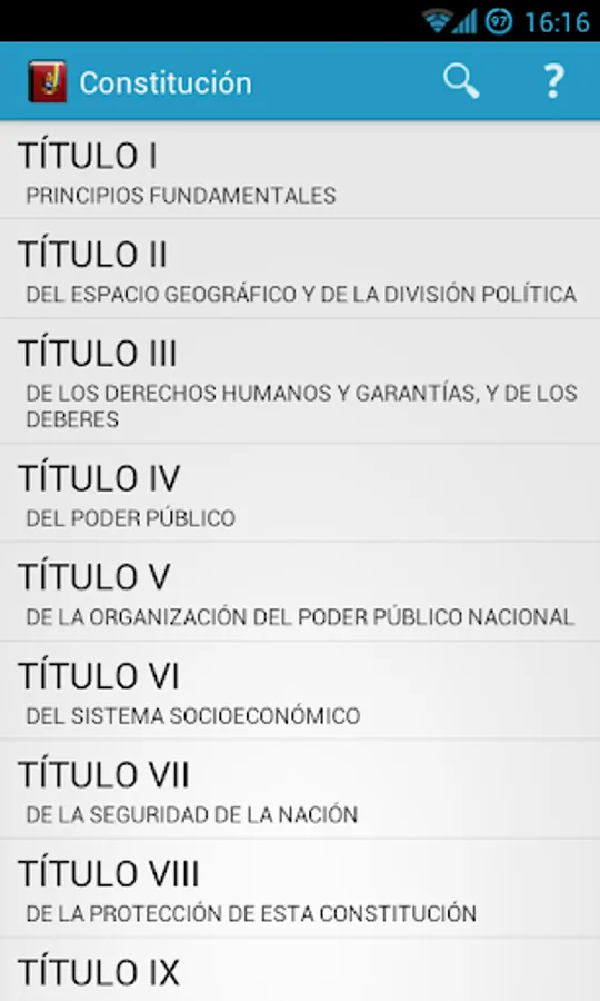 You can easily navigate and very comfortable among the titles, chapters and articles of our Constitution besides doing general searches listed or pressing the search button on the keyboard.