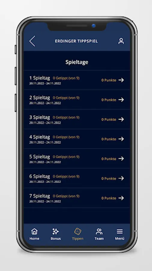 - Tap all game days