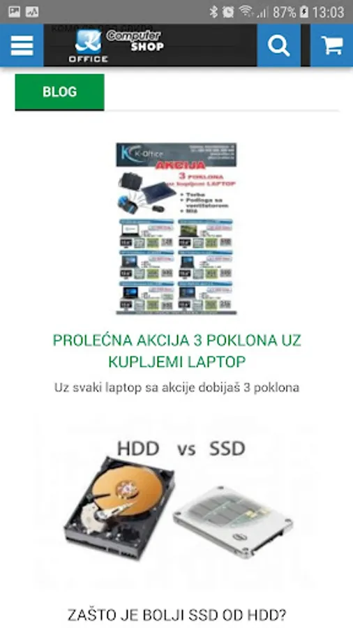 Application next to the web store contains a blog with helpful articles, answers to frequently asked questions, the field of application in the company newsletter, information about the company, the delivery and payments.