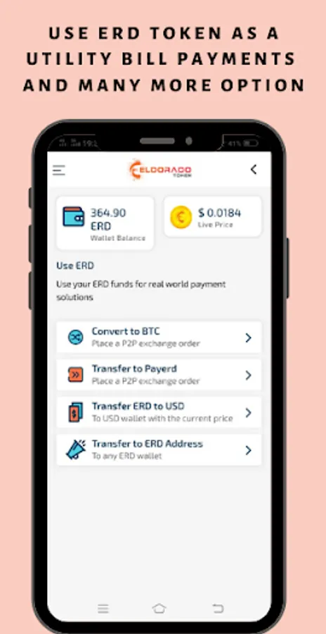 ERD wallet also offers different crypto services with different benefits like Earn Bitcoin, Use ERD tokens to trade with Crypto markets, etc. ERD tokens can also be used in our daily living expenses like Utility bills, Phone recharge, Book hotel, and flight tickets, Bank fund transfer and more.