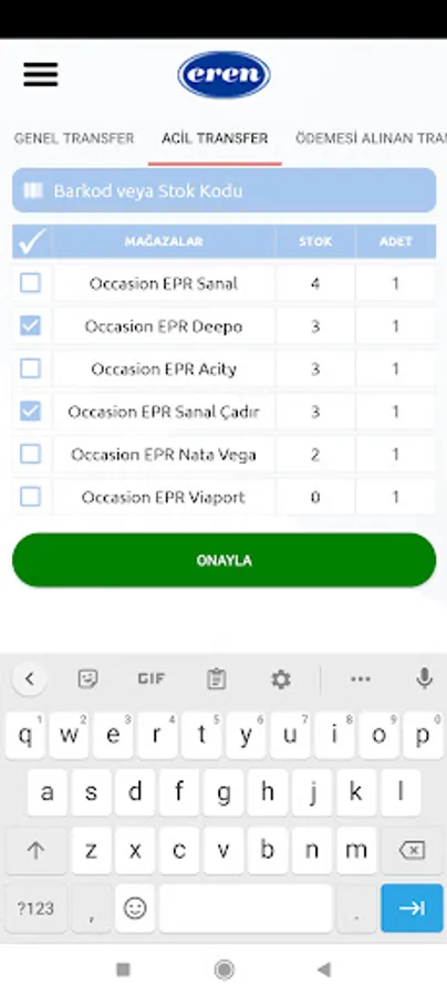 It is an eren holding store application where you can perform transfer transactions, label printing, stock inquiry, warehouse section transfer operations.