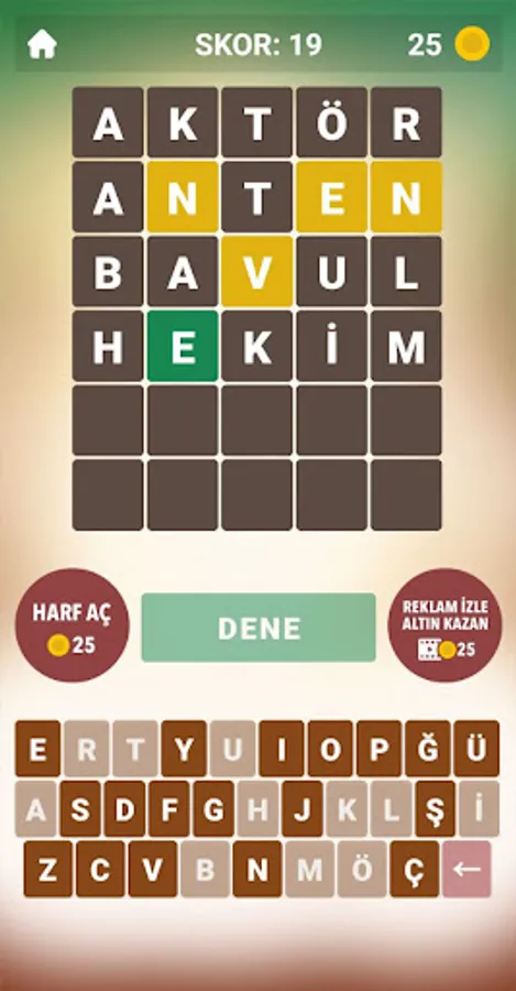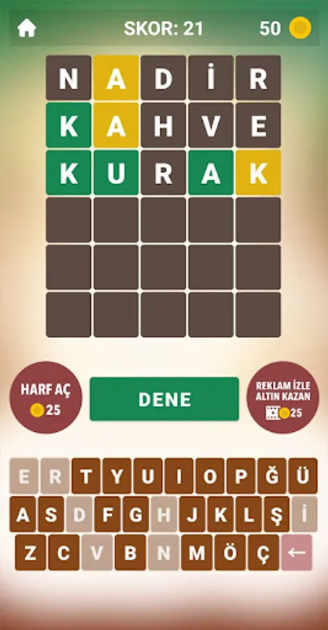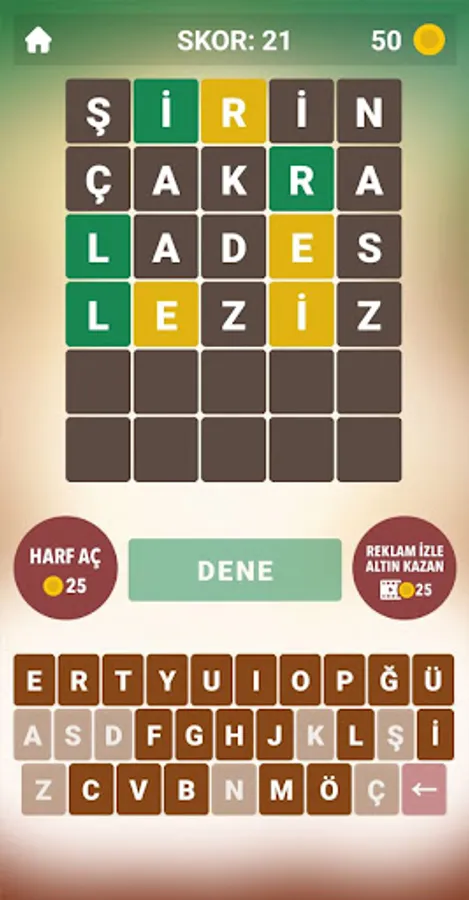 The green letters are in the right place, the yellow ones are in the wrong place.