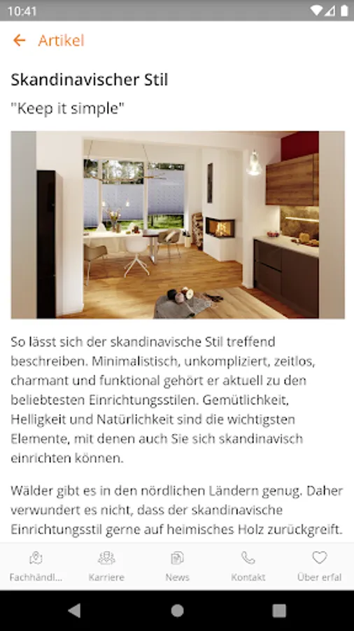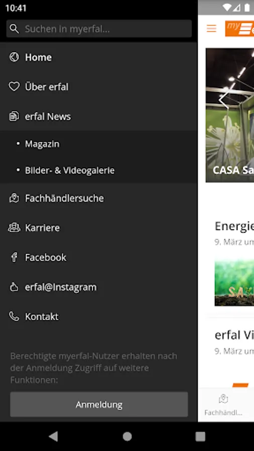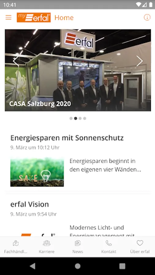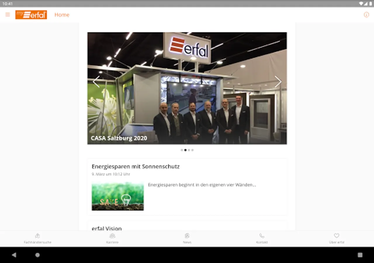 myerfal is the digital communication and information platform of erfal GmbH & Co. KG. Customers, partners and employees can find out about the company quickly and easily. End consumers can use the specialist retailer search directly to find the right advisor in their area and there are exciting articles to discover in the magazine area. The app's offer is supplemented by access to current job advertisements.