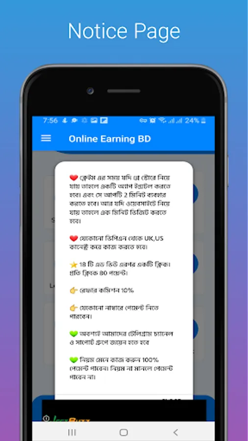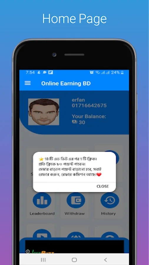 Online Earning BD App is a Play to Win Cash App. You can Earn Cash by completing various simple tasks. If you are looking for an Online Income Source or Easy Money Income App in BD, this is the best Application for you. N.B- please use Refer code- 01716642675
