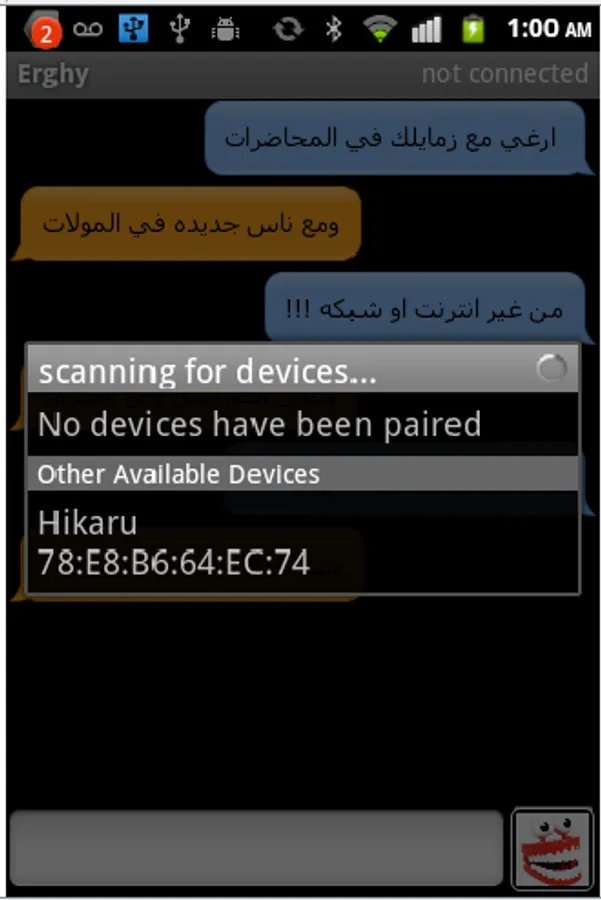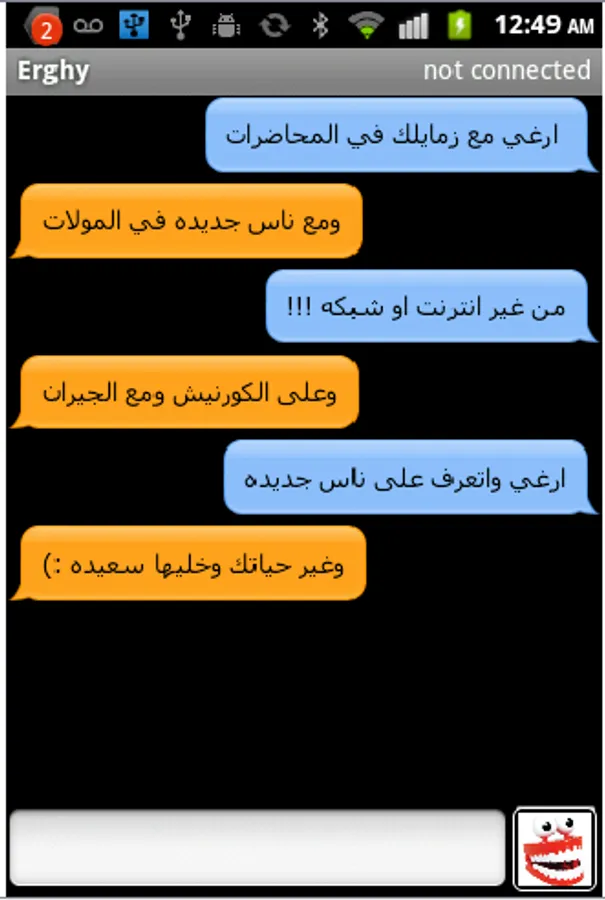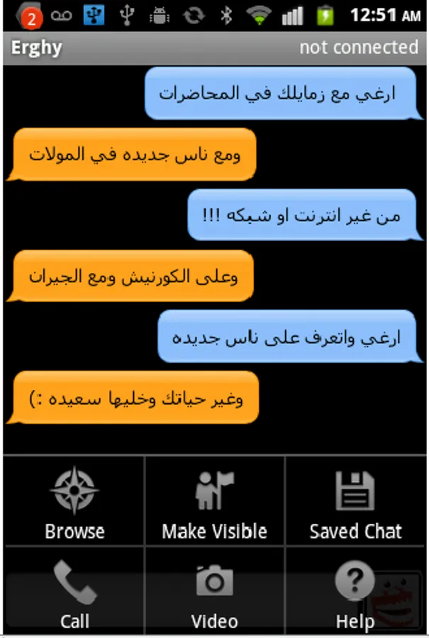 ِِErghy considered one of the best chatting apps , it allows you to chat with people using the same program without knowing them and without internet . you can chat with anyone, it can be used in universities , malls , beach , metro or with neighbors .