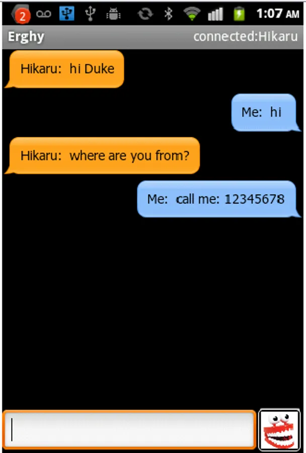 The most important feature of Erghy it allows you to chat without internet annonymously with anyone without knowing them and without expose any information about your identity