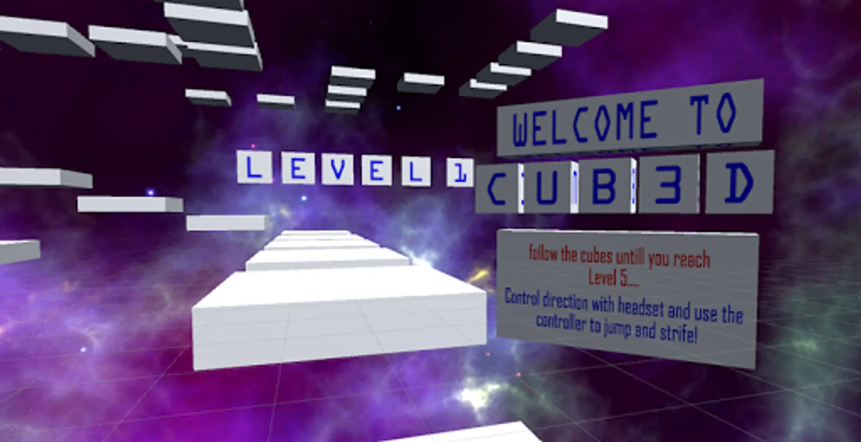 Starting on Platform 1, using the Gamepad to move / strife / jump, & the Headset to look around, master your way to the very top, reaching Platform 5 and ultimately setting yourself free from the world of CUBE 3D...