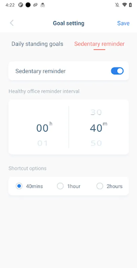 Say goodbye to sedentary habits and hello to improved productivity and overall well-being. Set your standing time goals with ease using the ErgoFX app, ensuring you strike the perfect balance between sitting and standing throughout your workday. With regular reminders, you'll be prompted to switch positions, preventing the negative effects of prolonged sitting, and reducing the risk of health issues.