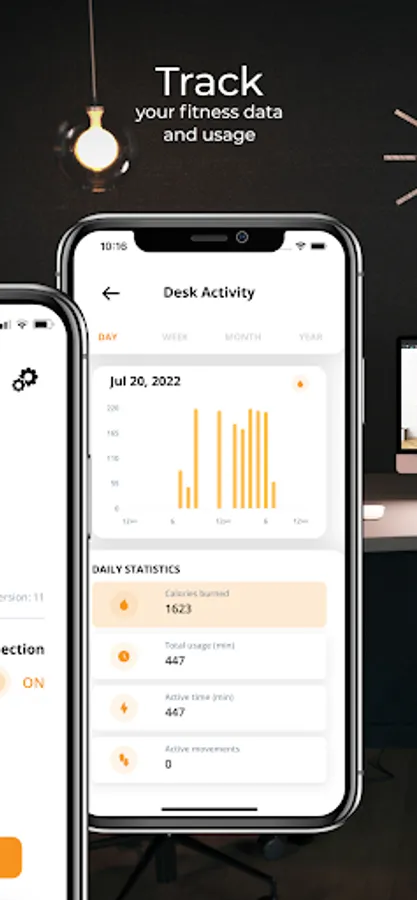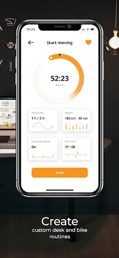 - Track your office stats and daily goals, noting your time sitting, standing, or biking, and collecting achievements for your work along the way