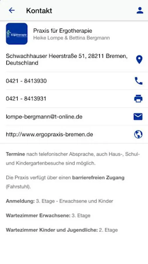 Welcome to the official app of the practice of Occupational Therapy in Bremen Schwachhausen. Find out everything about us and our therapies. Arrange the app like an appointment with us or give us from your personal feedback! Of course you can also use our call back service.