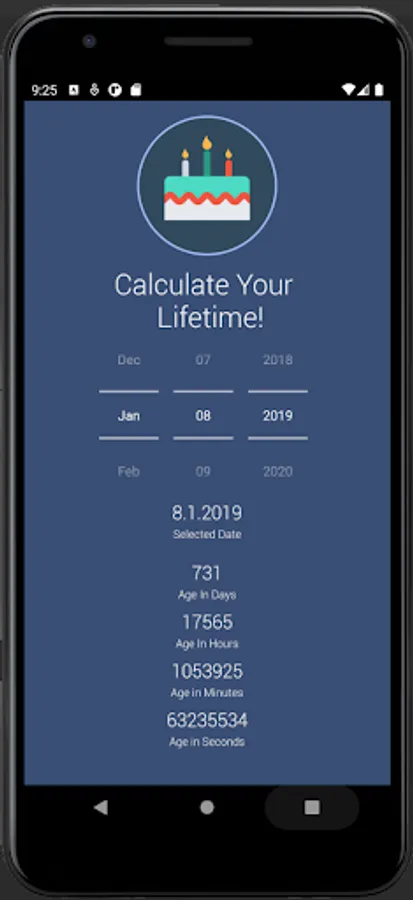You can simply choose your birthday and calculate your age in different units like days, hours, minutes and seconds.