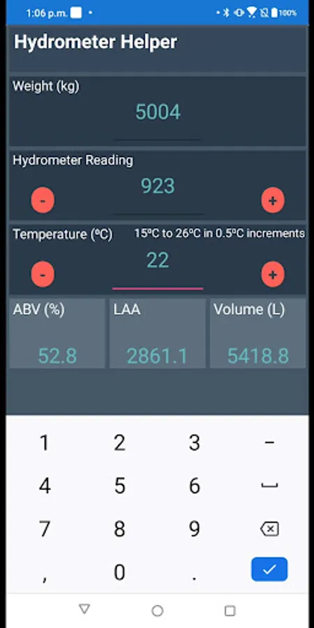 Calling all distillers! Let your day to day become a little less monotonous, and a little more fun! The hydrometer helper will take your hydrometer and thermometer readings, and without flipping a single page of a book, return your ABV! Add in your spirit weight, and your LAA and spirit volume will be calculated like magic. Bye-bye papercuts, hello quick and easy ABV results!