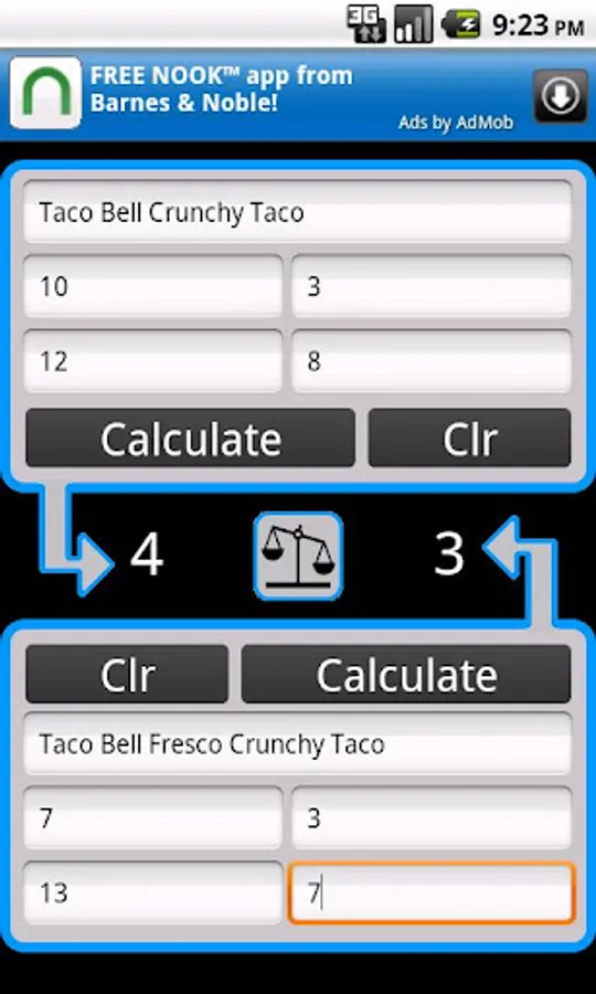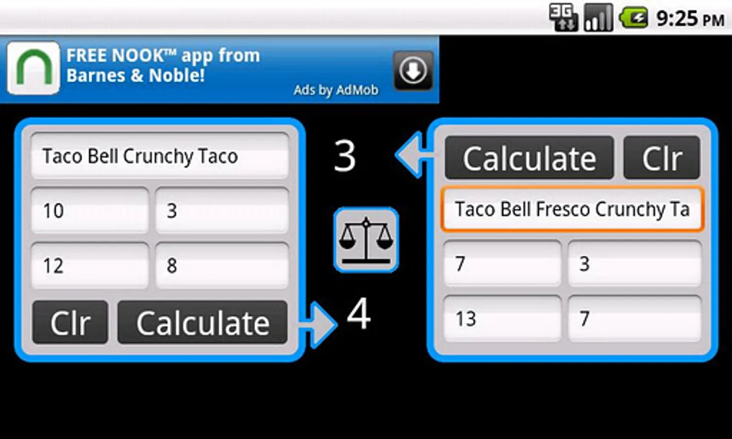 PointCompare allows you to enter information for two different foods and easily see which one is the better choice based off of the WeightWatchers® PointsPlus® value. PointCompare will save entered information so that it can be used again when comparing with another food. This simple app will make it easier to determine which loaf of bread to get, or which entree to choose at your favorite restaurant.