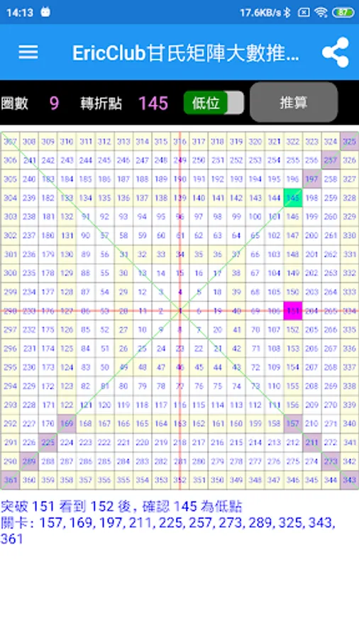 依據台灣甘氏矩陣圖研究會所出版的 "甘氏矩陣圖-新價格推算" 內所描述的大數推算準則來開發出的工具