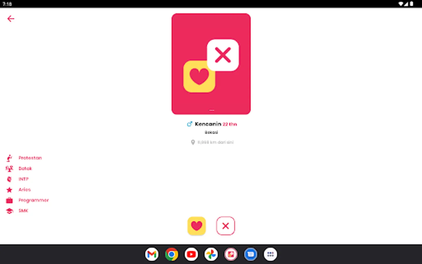 The dating application is an original application from Indonesia that looks at market share in Indonesia, where most people are looking for partners with the same ethnic or religious criteria, and dating applications support all of that.