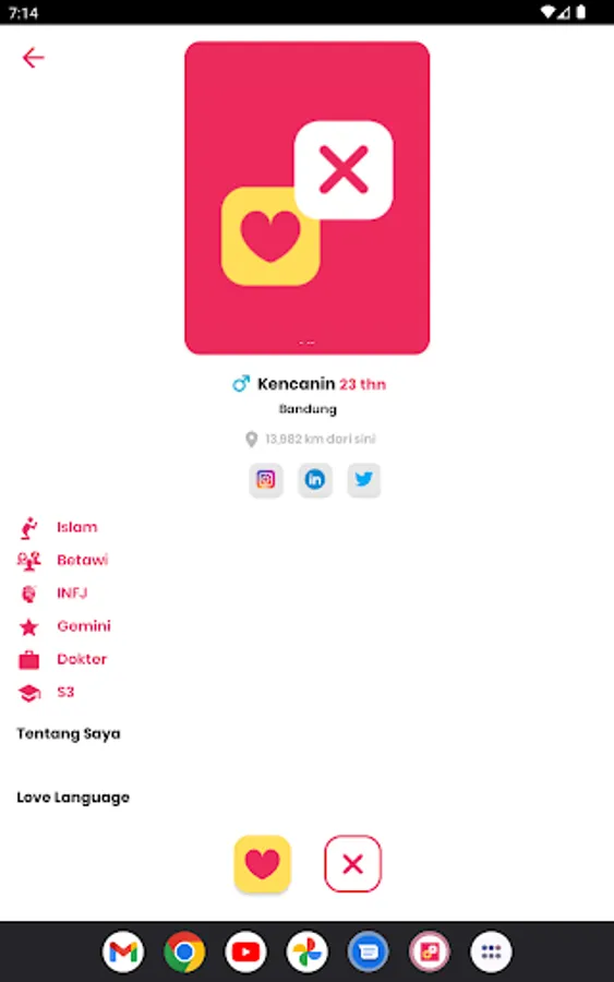 The feature shows all social media, which allows you to see your potential partner on several well-known social media applications