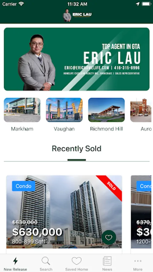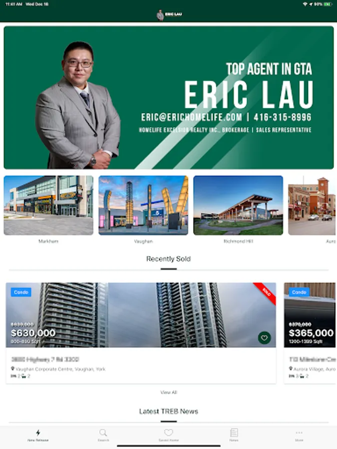 The Eric Homelife Real Estate App focuses on the City of Toronto and the Greater Toronto Area (GTA). It is designed to provide an easy way to search for Toronto properties. Providing users with the most up-to-date TORONTO Property Listings and SOLD PRICE information.