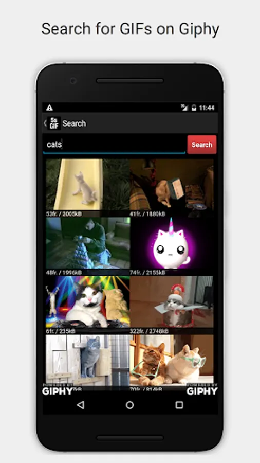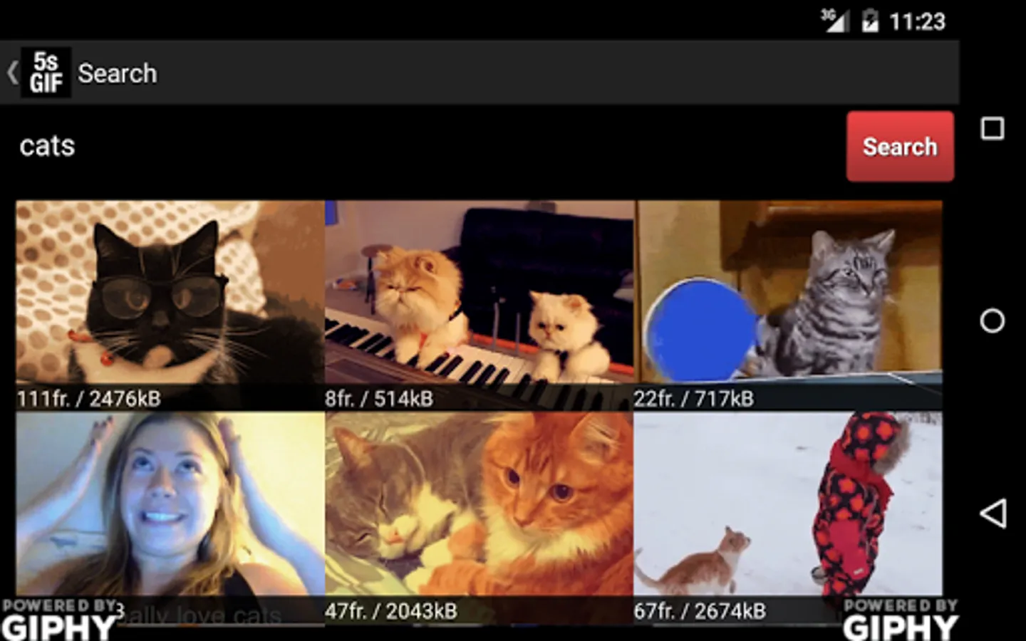 Create your own animated GIFs or search among thousands of popular animated GIFs via Giphy.