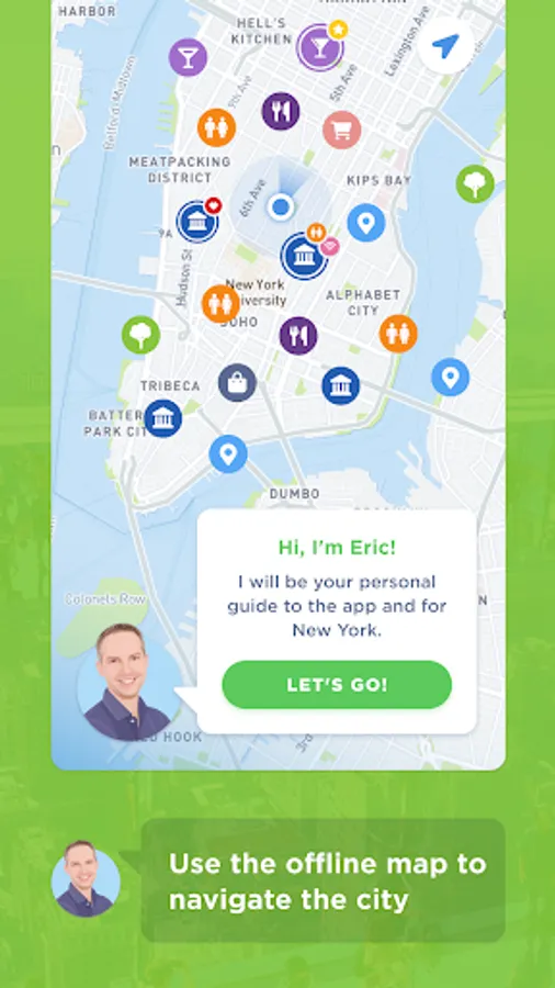 Because the maps can be used offline, you can always see where you are in the city. You won’t need an internet connection to navigate through the Big Apple and are always able to see what you can see and do in the area you are in.