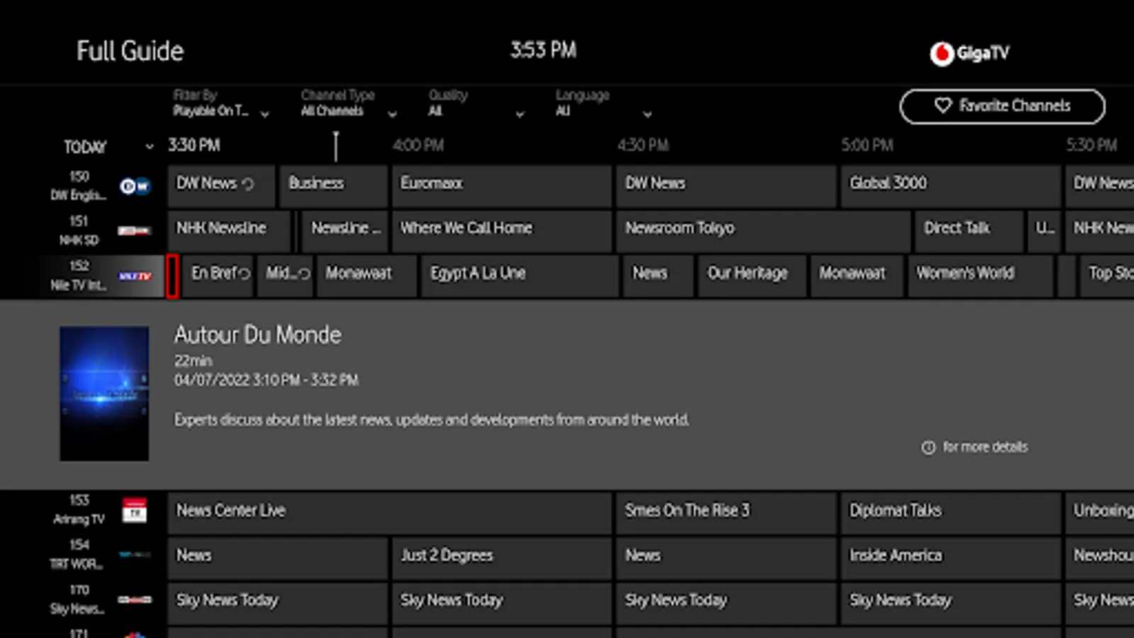 Take your TV experience on the go with the TV app. Whether you’re accessing from your phone or tablet, you can enjoy all your favorite live-TV channels and on-demand content from anywhere in Qatar.