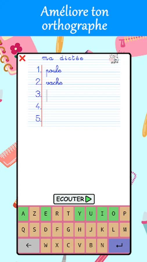 With Ma Dictée, your child learns spelling while having fun and improves his vocabulary.