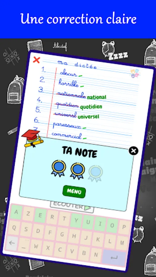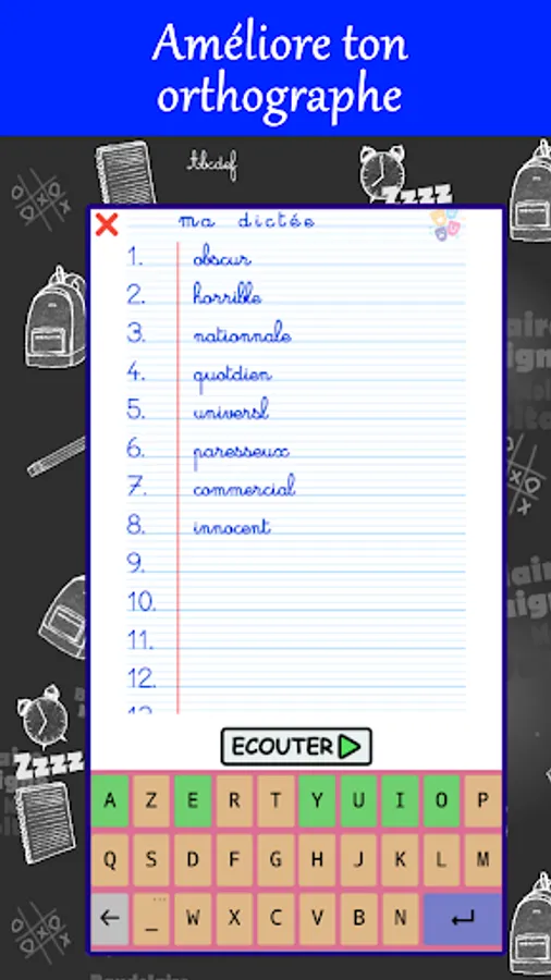 With Ma Dictée, you learn spelling while having fun and you improve your vocabulary.