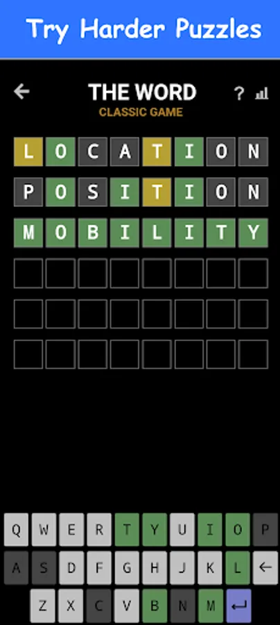 You can also train yourself by playing the CLASSIC GAME. You can then choose the difficulty and the dictionary that suits you.