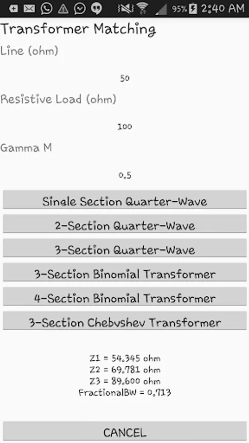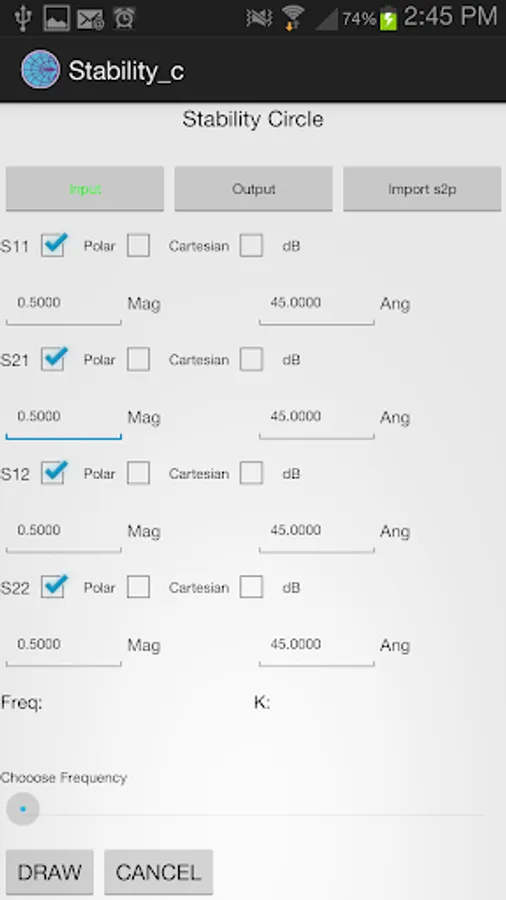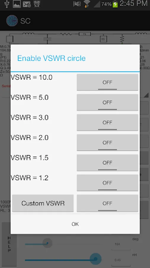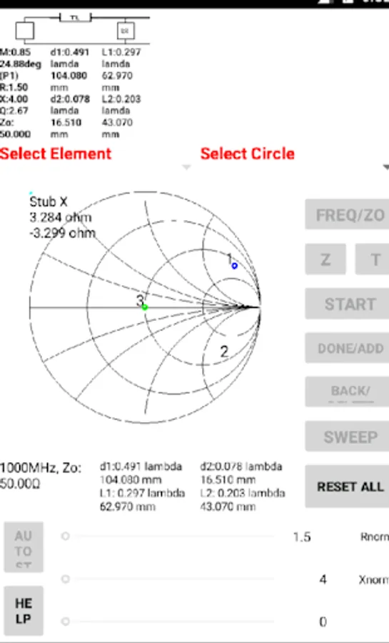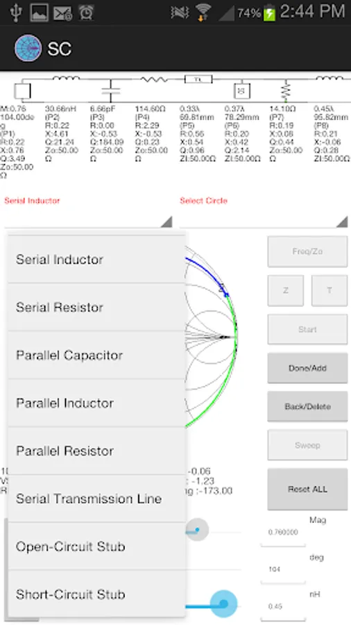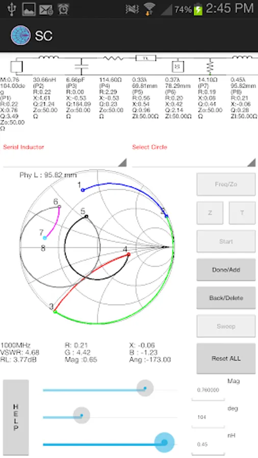 • User friendly with adjustable seek bars and edittext boxes to move element parameter and the resultant impedance value in the smith chart with high precision.