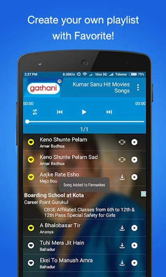 This app has a huge collection of Kumar Sanu songs. The app lets you download, listen and also lets you mark your favourite songs.