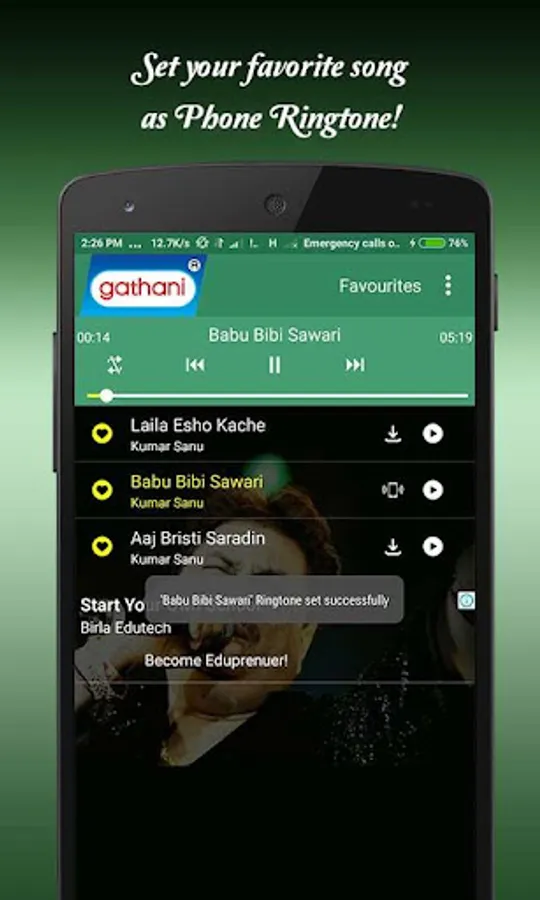 This app has a huge collection of Kumar Sanu songs. The app lets you download, listen and also lets you mark your favourite songs.