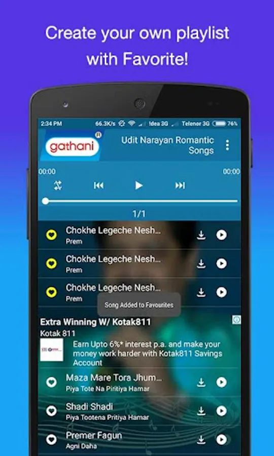 This app has a huge collection of Udit Narayan songs. The app lets you download, listen and also lets you mark your favourite songs.