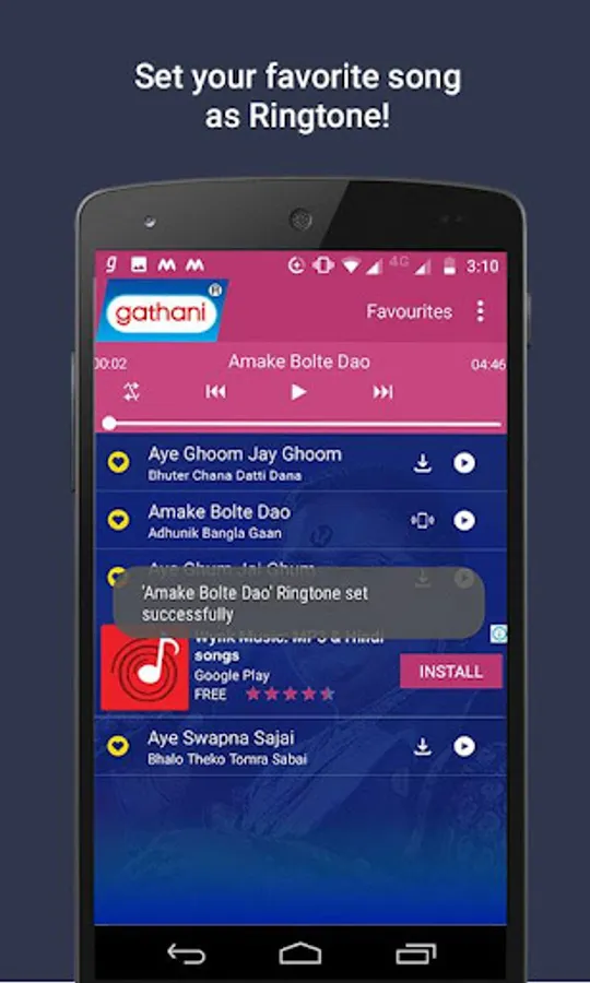 The app lets you download, listen and also let’s you mark your favourite songs.